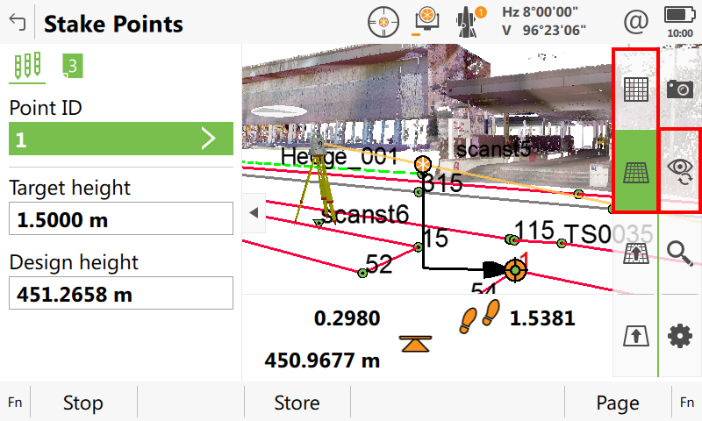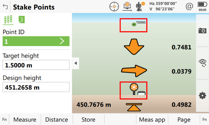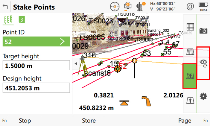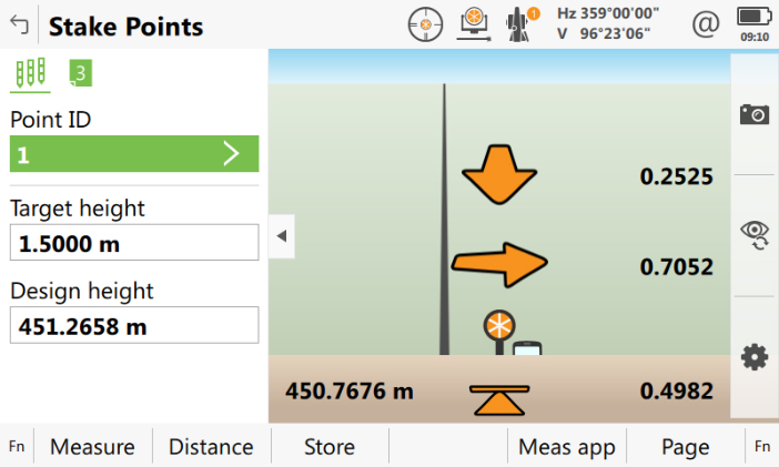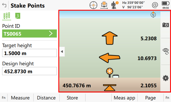 The stake view can be thought of as the traditional view, where the staking scene is simplified and represented by instructional arrows and values. This is probably still the most used stake view on-site, as the large clear graphics, and user-selectable referencing options mean that staking is made simple and easy, which is especially useful in harsh site conditions.